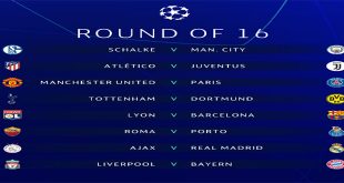 نيون-سويسرا –سانا أسفرت قرعة دور الـ16 لدوري أبطال أوروبا لكرة القدم التي سحبت اليوم في مدينة نيون السويسرية عن مواجهات نارية حيث يواجه شالكة الألماني مانشستر سيتي الإنكليزي، ويلتقي أتلتيكو مدريد الإسباني مع يوفنتوس الإيطالي. وسيقابل مانشستر يونايتد الإنكليزي باريس …