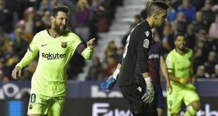 بلنسية-سانا سجل ليونيل ميسي أول ثلاثية له في دوري الدرجة الأولى الإسباني لكرة القدم هذا الموسم وصنع هدفين صانعا لفريقه برشلونة فوزا بخمسة أهداف نظيفة على مستضيفه ليفانتي. وبهذا الفوز عزز برشلونة تصدره للدوري الإسباني برصيد 34 نقطة بفارق ثلاث …