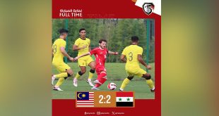 بكين-سانا تعادل منتخب سورية لكرة القدم للرجال مع نظيره الماليزي بهدفين لمثلهما في المباراة