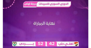 حلب-سانا تأهل فريق بردى لسلسلة الدور النهائي من دوري كرة السلة للسيدات، بعد فوزه على أهلي حلب