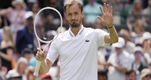 لندن-سانا فك الروسي دانييل مدفيديف، المصنف ثالثاً عالمياً، عقدته في بطولة ويمبلدون الإنكليزية للتنس متجاوزاً ربع النهائي