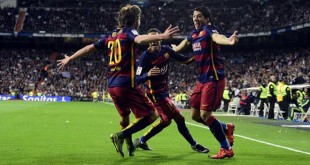 مدريد-سانا قلص برشلونة آمال ريا ل مدريد في إحراز لقب الدوري الاسباني لكرة القدم بعد أن غلبه برباعية نظيفة مساء اليوم. وأحرز اهداف برشلونة سواريز هدفين ونيمار والقائد اندريس انيستا بعد أداء مذهل في استاد سانتياغو برنابيو معززا صدارته وموسعا …