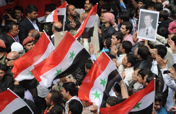 نظمت فعاليات أهلية وحزبية أمس تجمعا جماهيريا في ساحة خورشيد في المهاجرين بدمشق بعنوان “تخليد الشهداء في صورة العلم السوري” بمشاركة رجال دين وأعضاء من مجلس محافظة دمشق وفرع دمشق لحزب البعث العربي الاشتراكي. 20140421-154219.jpg وجرى خلال التجمع تكريم 44 …