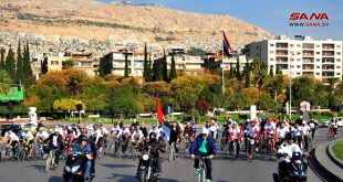 دمشق-سانا بمشاركة أكثر من 400 دراج أقامت سفارة دولة الإمارات العربية المتحدة بدمشق مسيراً رياضياً للدراجات الهوائية