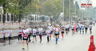 دمشق-سانا قبل شروق الشمس في سماء دمشق اليوم انطلقت شارة بداية ماراثون دمشق الدولي الأول بمشاركة عدائين من 15 دولة