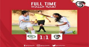 عمان-سانا تعادل منتخب سورية بكرة القدم للسيدات مع نظيره الفلسطيني بهدف لمثله في الجولة الثانية من بطولة غرب