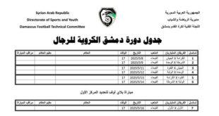 دمشق-سانا يلتقي فريق الجيش مع الكرامة عند الساعة الخامسة مساء في افتتاح مباريات دورة دمشق الكروية التي