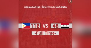 طهران-سانا خسر منتخب سورية بكرة السلة للشباب أمام منتخب الفلبين بنتيجة 48-112نقطة اليوم