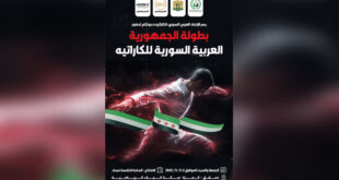 دمشق-سانا تنطلق في صالة الجلاء الرياضية بدمشق في الثاني من الشهر القادم بطولة الجمهورية العربية السورية للكاراتيه