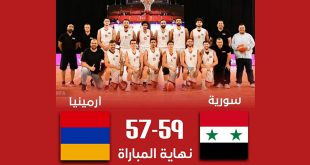 يريفان-سانا فاز منتخب سورية الأولمبي بكرة السلة لتحت 23 عاماً على منتخب أرمينيا اليوم بنتيجة 59-57 نقطة