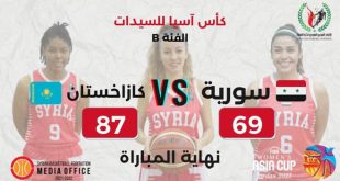 عمان-سانا خرج منتخب سورية لكرة السلة للسيدات من منافسات بطولة كأس آسيا للمستوى الثاني بخسارته أمام منتخب كازاخستان بنتيجة 69-83 نقطة في المباراة التي جمعتهما اليوم في العاصمة الأردنية عمان بالملحق المؤهل للدور نصف النهائي للبطولة. وجاءت الارباع الثلاثة الأولى …