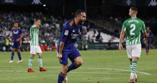مدريد-سانا حقق ريال مدريد فوزاً ثميناً بهدف دون رد على مضيفه ريال بيتيس في مباراة جمعت الفريقين أمس لحساب الجولة الثالثة من الدوري الإسباني لكرة القدم. ويدين الريال بالفضل في هذا الفوز لمدافعه الأيمن داني كارفاخال الذي سجل الهدف الوحيد …