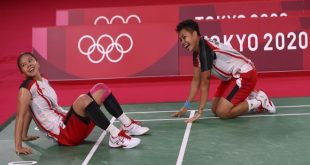 طوكيو-سانا حقق الثنائي الإندونيسي غريسيا بولي وأبرياني راهايو المصنف السادس عالمياً ذهبية زوجي السيدات في منافسات الريشة الطائرة بدورة الألعاب الأولمبية المقامة في طوكيو. وحصد الثنائي الإندونيسي بولي وراهايو الميدالية الذهبية عقب فوزه على الزوجي الصيني تشين جينغ تشين وجيا …