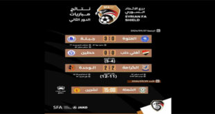 دمشق-سانا بلغ فريق الشعلة الدور نصف النهائي لبطولة درع اتحاد كرة القدم بفوزه على تشرين بهدفين لهدف