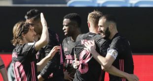 مدريد-سانا فاز ريال مدريد اليوم على مضيفه سيلتا فيغو بثلاثة أهداف مقابل هدف واحد على ملعب بالايدوس ضمن منافسات الجولة الـ 28 من الدوري الإسباني لكرة القدم. وسجل المهاجم الفرنسي كريم بنزيما هدفين متتاليين للفريق الملكي في الدقيقتين 20 و30 …
