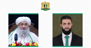 دمشق-سانا تلقى رئيس الجمهورية العربية السورية السيد أحمد الشرع برقية تهنئة من رئيس وزراء امارة أفغانستان