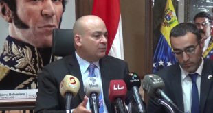 دمشق- سانا أكد سفير جمهورية فنزويلا البوليفارية بدمشق عماد صعب أن العقوبات الأمريكية بحق بلاده تمثل “سياسة تقوم على التهديد والعنف والحماقة” داعيا إلى احترام سيادة واستقلال فنزويلا . ورأى السفير صعب خلال مؤتمر صحفي عقده بمبنى السفارة اليوم أن العقوبات …
