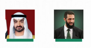 دمشق-سانا أجرى قائد الإدارة السورية الجديدة أحمد الشرع اتصالاً هاتفياً مع صاحب السمو الشيخ محمد بن زايد آل نهيان