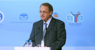 موسكو-سانا أكد المبعوث الخاص للرئيس الروسي إلى الشرق الأوسط وبلدان إفريقيا نائب وزير الخارجية ميخائيل بوغدانوف عزم بلاده مواصلة دعم سورية في القضاء على الأوكار الإرهابية من تنظيمي جبهة النصرة و”داعش” الإرهابيين بما في ذلك في محيط مدينة تدمر. وقال بوغدانوف …