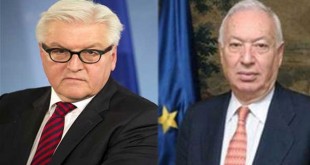 مدريد-سانا دعا وزيرا الخارجية الألماني فرانك فالتر شتاينماير والإسباني خوسيه مانويل غارسيا مارغالو الولايات المتحدة وروسيا إلى التحاور والتعاون لايجاد حل سياسي للأزمة في سورية. ونقلت وكالة الصحافة الفرنسية عن شتاينماير وغارسيا مارغالو قولهما في مؤتمر صحفي مشترك في مدريد …