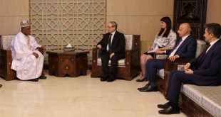 دمشق-سانا التقى وزير الخارجية والمغتربين الدكتور فيصل المقداد اليوم السفير سعيدو محمد دودو الذي قدّم وثيقة اعتماده