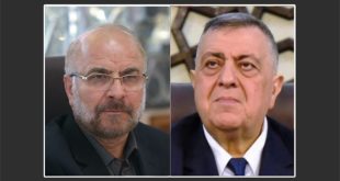 دمشق-سانا وجه رئيس مجلس الشعب حموده صباغ رسالة تعزية ومواساة إلى رئيس مجلس الشورى الإسلامي الإيراني الدكتور محمد باقر قاليباف
