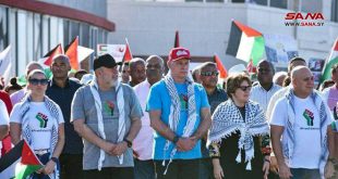 هافانا-سانا خرج آلاف الكوبيين اليوم يتقدمهم الرئيس ميغيل دياز كانيل في مسيرة تضامنية حاشدة مع فلسطين