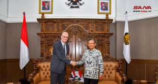 جاكرتا-سانا بحث وزير الطاقة والثروة المعدنية في إندونيسيا أرفين تسريف مع سفير سورية في جاكرتا عبد المنعم عنان آفاق تطوير التعاون الثنائي بين البلدين في مجال الطاقة.