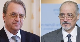 موسكو-سانا بحث الممثل الخاص للرئيس الروسي لشؤون الشرق الأوسط وبلدان أفريقيا نائب وزير الخارجية ميخائيل بوغدانوف مع سفير سورية لدى روسيا الاتحادية الدكتور بشار الجعفري