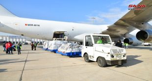 دمشق-سانا وصلت اليوم طائرة صينية إلى مطار دمشق الدولي محملة بالمساعدات الإغاثية لمساعدة