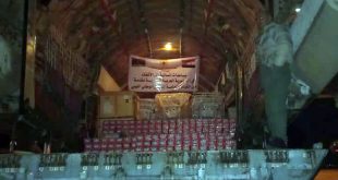 اللاذقية-سانا وصلت إلى مطار اللاذقية الدولي فجر اليوم طائرة ليبية محملة بدفعة مساعدات جديدة إلى