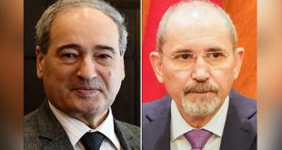 دمشق-سانا تلقى وزير الخارجية والمغتربين الدكتور فيصل المقداد اتصالاً هاتفياً من أيمن الصفدي نائب رئيس مجلس الوزراء وزير الخارجية وشؤون المغتربين في المملكة الأردنية الهاشمية