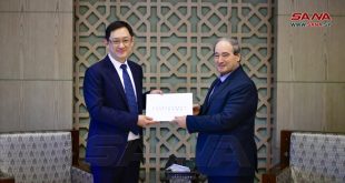 دمشق-سانا تسلم الدكتور فيصل المقداد وزير الخارجية والمغتربين اليوم نسخة من أوراق اعتماد السفير شي هونغوي،