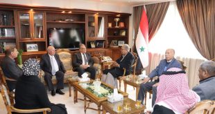 دمشق-سانا بحث وزير الزراعة المهندس محمد حسان قطنا مع نائب رئيس النقابة العامة للعاملين بالزراعة والري والصيد واستصلاح الأراضي المصرية عبد الفتاح سيد أحمد