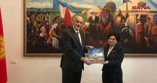 موسكو-سانا بحث سفير سورية لدى روسيا الدكتور بشار الجعفري مع سفيرة جمهورية قرغيزستان في موسكو جولنارا كلارا سامات سبل تعزيز العلاقات الثنائية والتاريخية التي تجمع البلدين الصديقين.