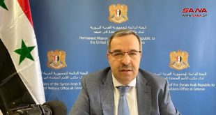 جنيف-سانا بحث مندوب سورية الدائم لدى الأمم المتحدة والمنظمات الدولية الأخرى في جنيف السفير حسام الدين آلا