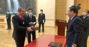 بيونغ يانغ-سانا أقامت هيئة رئاسة مجلس الشعب الأعلى في جمهورية كوريا الديمقراطية حفلاً وداعياً للسفير تمام سليمان بمناسبة انتهاء مهامه