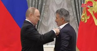 موسكو-سانا قلد الرئيس الروسي فلاديمير بوتين في الكرملين اليوم وسام الصداقة لطبيب العيون السوري الدكتور يوسف نعيم