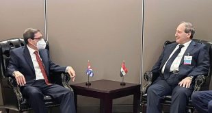 نيويورك-سانا بحث وزير الخارجية والمغتربين الدكتور فيصل المقداد على هامش أعمال الجمعية العامة للأمم المتحدة في دورتها الـ76 مع نظيره الكوبي برونو رودريغز سبل تطوير العلاقات الثنائية بين البلدين الصديقين والتنسيق المشترك بشأن البنود المدرجة على جدول هذه الدورة. وكانت …