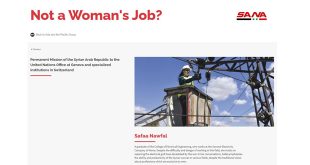 جنيف-سانا بمناسبة عيد العمال العالمي أقام مكتب الأمم المتحدة في جنيف معرضاً افتراضيا للصور تحت عنوان “ليست مهنة امرأة” اختار له العديد من نساء العالم العاملات عرفاناً ودعماً لهن ومن بينهن السوريتان مهندسة الكهرباء صفاء نوفل وحكم كرة القدم الدولي …