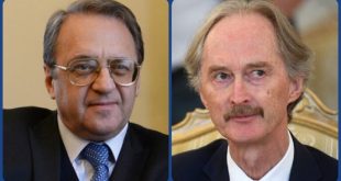موسكو-سانا بحث الممثل الخاص للرئيس الروسي لشؤون الشرق الأوسط وبلدان أفريقيا نائب وزير الخارجية ميخائيل بوغدانوف مع المبعوث الخاص للأمين العام للأمم المتحدة إلى سورية غير بيدرسون نتائج اجتماعات الجولة الخامسة من محادثات لجنة مناقشة الدستور في جنيف. وأكد الجانبان …