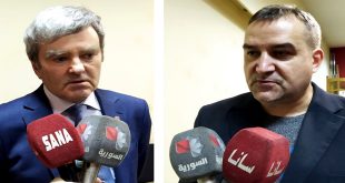 دمشق-سانا استعرض المشاركون في المؤتمر الصحفي السوري الروسي المشترك الذي عقد بدمشق اليوم الجهود المبذولة من قبل الجانبين لإعادة الحياة الطبيعية إلى المناطق المحررة من الإرهاب في سورية وإعادة اللاجئين والمهجرين والمعوقات التي تواجهها بسبب الحصار الاقتصادي الغربي المفروض على …