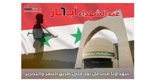 القدس المحتلة- سانا أكد رئيس الفعاليات الوطنية الفلسطينية في الأراضي المحتلة عام 1948 الشيخ سلمان عنتير أن تضحيات الشهداء أفشلت مخططات الطامعين بالوطن. وأدان عنتير في بيان له بمناسبة عيد الشهداء.. تواطؤ الدول الكبرى وعلى رأسها الولايات المتحدة مع كيان …