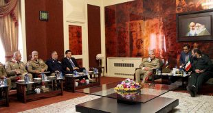 طهران-سانا بحث العماد علي عبدالله أيوب رئيس هيئة الأركان العامة للجيش والقوات المسلحة مع نائب قائد الحرس الثوري الإيراني لشؤون التنسيق العميد جمال الدين آبرومند في طهران اليوم سبل مواجهة المخاطر الإرهابية التي تهدد سورية والمنطقة ولاسيما بعد العدوان الأمريكي …