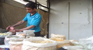 ريف دمشق-سانا خلف طاولة بقوائم حديدية ولوح خشبي وضع عليها دون تثبيت تعلوها أصناف من البهارات معبأة في أكياس نايلون وميزان على طاولة صغيرة وقف أيهم بجسمه النحيل ووجه شع منه ضياء عينيين سوداوين ينتظر زبائنه بعد يومين على البدء …