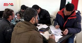 دير الزور-سانا تواصلت في مركز التسوية ببلدة الشميطية بريف دير الزور الغربي عملية التسوية الشاملة الخاصة بأبناء المحافظة