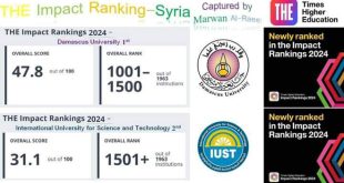دمشق-سانا دخلت جامعة دمشق للمرة الأولى ضمن تصنيف “التايمز” البريطاني الذي يعتبر التصنيف التعليمي البحثي الأهم على
