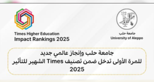 حلب-سانا دخلت جامعة حلب لأول مرة في تاريخها تصنيف Times للتأثير 2025 العالمي