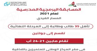 اللاذقية-سانا انطلقت اليوم منافسات المرحلة النهائية من المسار الفردي في المسابقة المدرسية البرمجية لعام 2021 والتي تقيمها إدارة الأولمبياد العلمي السوري في هيئة التميز والإبداع بمقر المركز الوطني للمتميزين بجامعة تشرين في اللاذقية بمشاركة 35 طالبا وطالبة من مختلف المحافظات. …