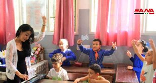 طرطوس-سانا بحب وشغف تستثمر المعلمة نغم علي مهاراتها في الرسم والغناء والموسيقا لتحريك روح المشاركة والتفاعل مع تلاميذ الصف الأول في مدرسة الشهيد علي أحمد الشنبور بمدينة طرطوس كطريقة للتعليم وإيصال المادة العلمية للتلاميذ ومساعدتهم على التعلم وتنمية المهارات بعيداً …